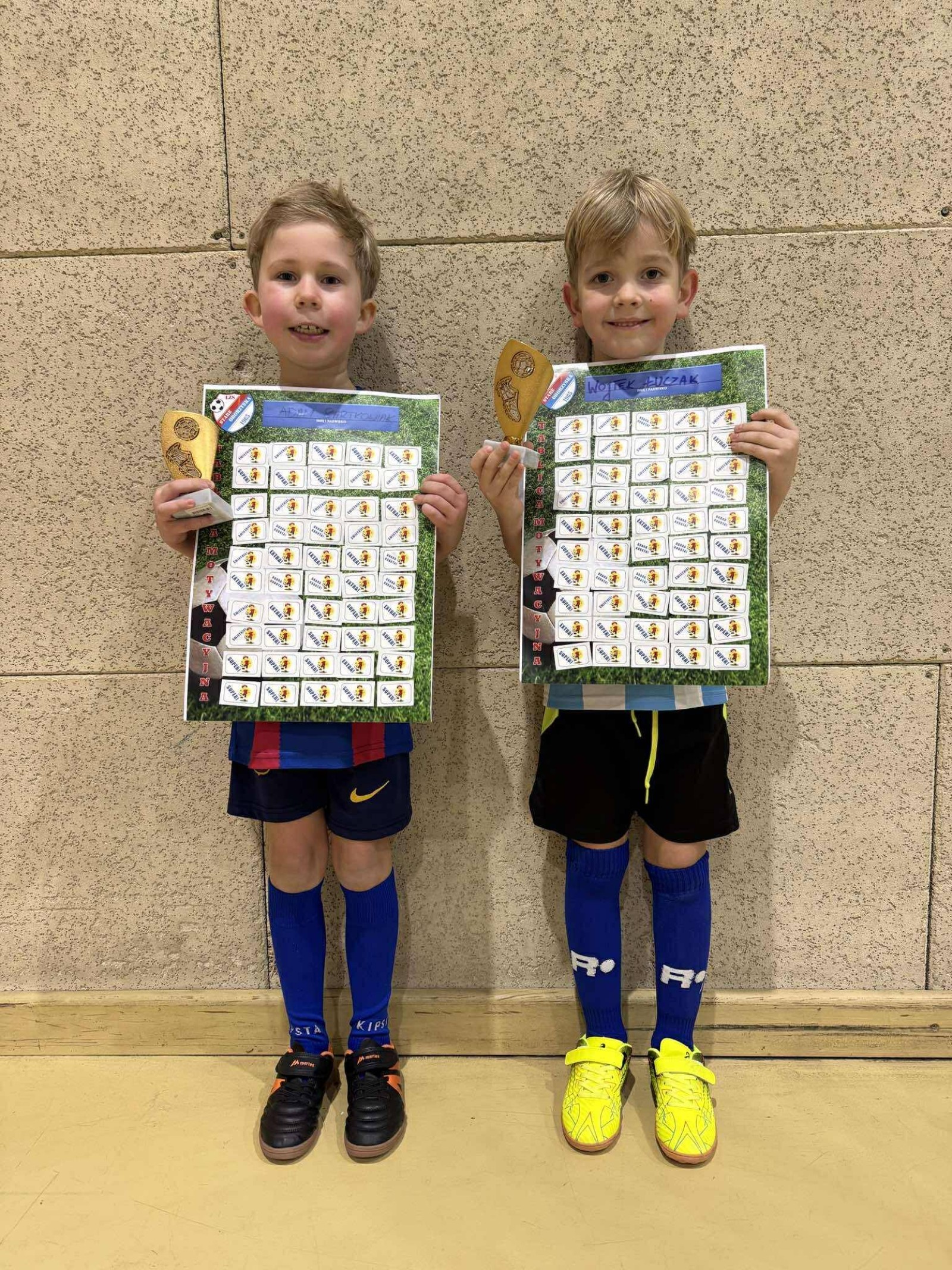 Dzięki regularnej obecności na treningach zebrali naklejki na swojej tablicy i zdobyli puchary i medale. Ich wytrwałość to świetny przykład dla innych – liczy się nie tylko talent, ale i obecność oraz chęć ciągłego doskonalenia się.